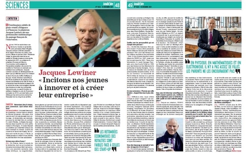 Né en 1943 et caché dans une ferme du Cantal où sa famille juive polonaise s'était réfugiée, Jacques Lewiner a été fait chevalier de la Légion d’honneur en 2002, puis promu officier en janvier 2020. Pandémie oblige, la cérémonie s’est tenue au palais de l’Elysée plusieurs mois après, en septembre 2021, en présence du président Emmanuel Macron. Ce promoteur enthousiaste de l’écosystème israélien cite souvent le modèle du Technion en exemple aux médias et aux politiques. Jacques Lewiner a soutenu le développement de start-ups qui affichent plus d’un milliard et demi d’euros de chiffre d’affaires en dix ans. Ancien directeur scientifique de l’École supérieure de physique et de chimie industrielles de la ville de Paris, il a transmis à ses étudiants la passion de la recherche et les a encouragés à déposer des brevets et à créer leur entreprise. Rencontre avec un esprit frondeur et pétillant, finaliste du prix de l’inventeur européen en 2018, qui s’est battu pour débloquer les verrous de la recherche française tout au long de sa carrière.